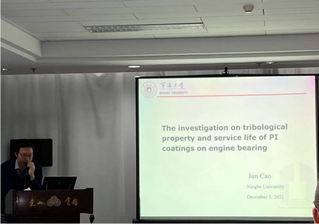曹均博士作了题为“The Investigation on Tribological Property and Service Life of PI Coatings on Engine Bearing”的口头报告,受邀参加《材料保护》期刊座谈会并入选中文核心期刊《材料保护》青年编委。