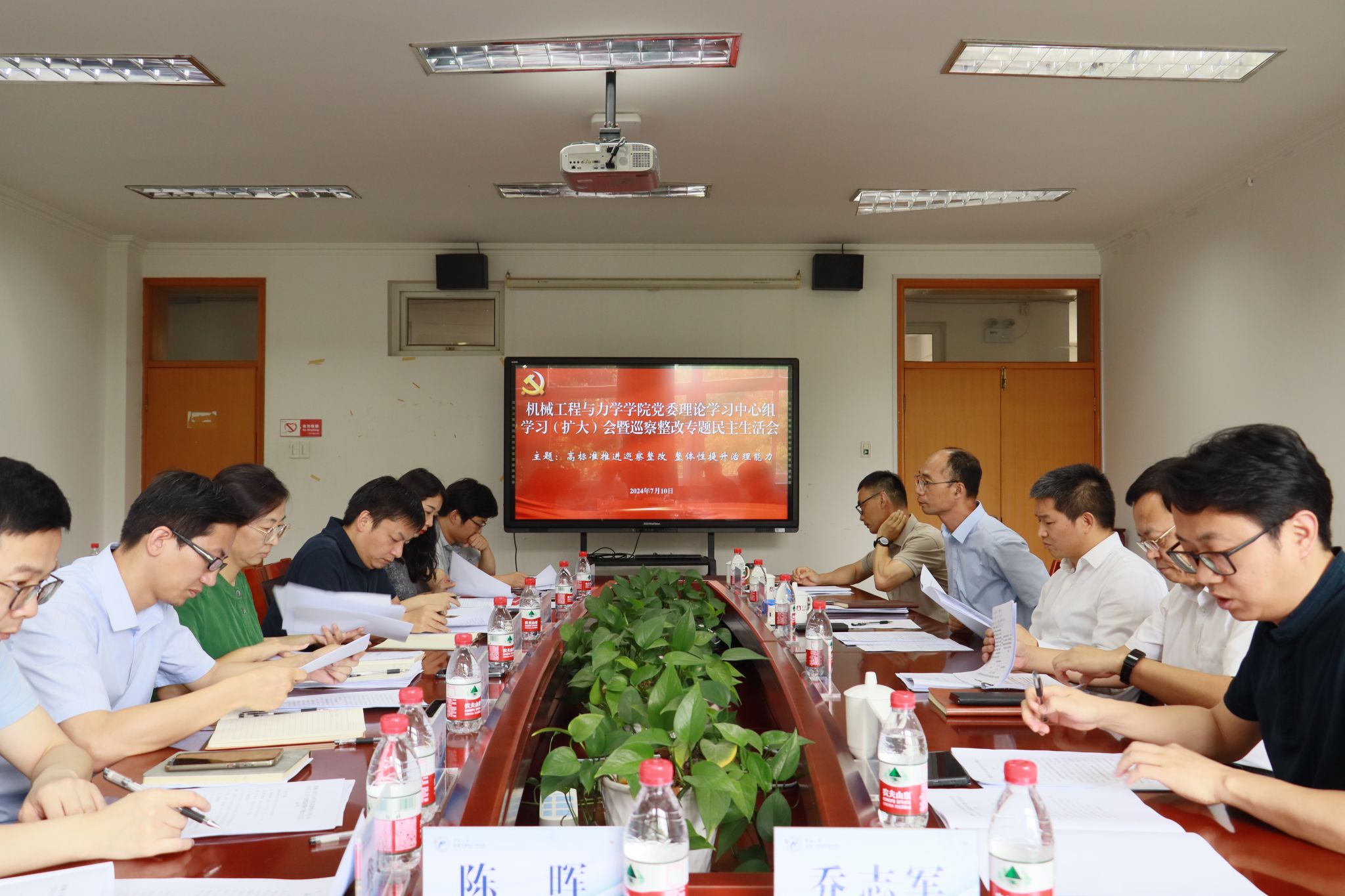 召开党委理论学习中心组学习(扩大)会暨巡察整改专题民主生活会,校党委副书记、副校长吕朝锋,发展规划处处长汪盛科,第三巡听旁听组成员到会指导。本次会议主题为“高标准推进巡察整改 整体性提升治理能力”。