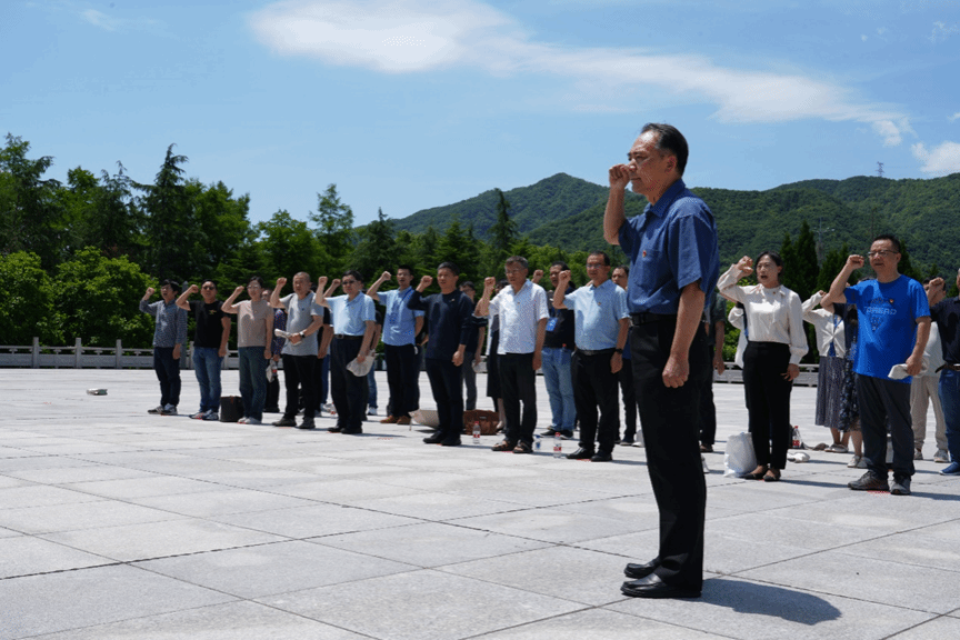 的党员及科技工作者代表们,怀着对革命先烈的崇高敬意,整齐列队于樟村四明山革命烈士陵园前。在庄严肃穆的氛围中,大家默哀致敬,随后每位党员向烈士纪念碑敬献了一株菊花,以表达对革命先烈们无私奉献、英勇奋斗精神的崇高敬意。紧接着,全体党员在纪念碑前重温了入党誓词,誓言不忘初心、牢记使命。