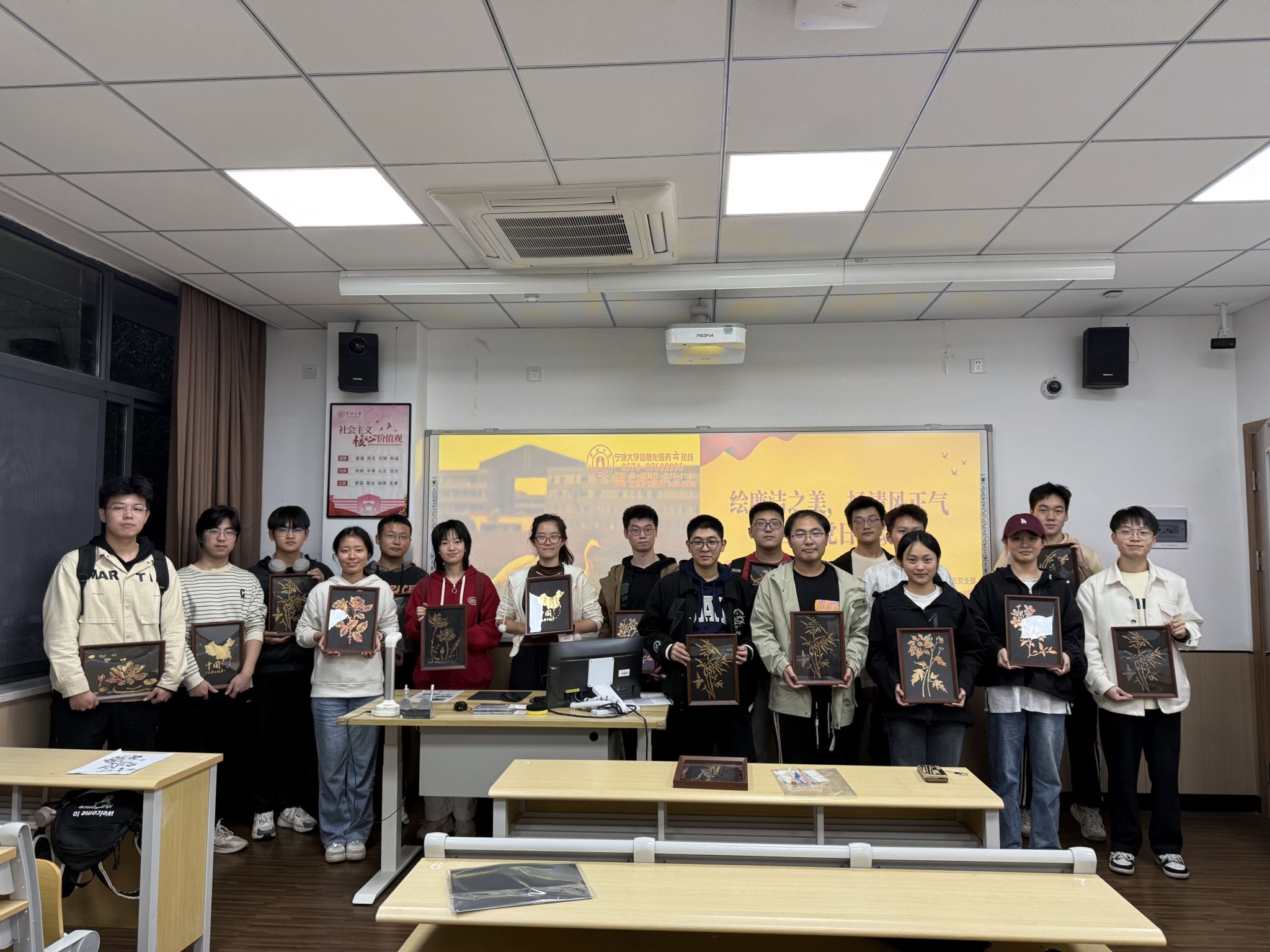智能制造工程与车辆工程专业本科生党支部与工程力学专业本科生党支部于11月13日下午联袂举办了“绘廉洁之美,扬清风正气”主题党日活动。此次党日活动以创作非物质文化遗产工艺“烧箔画”为载体,旨在向学生党员传达清正廉洁、自律自强的理念。