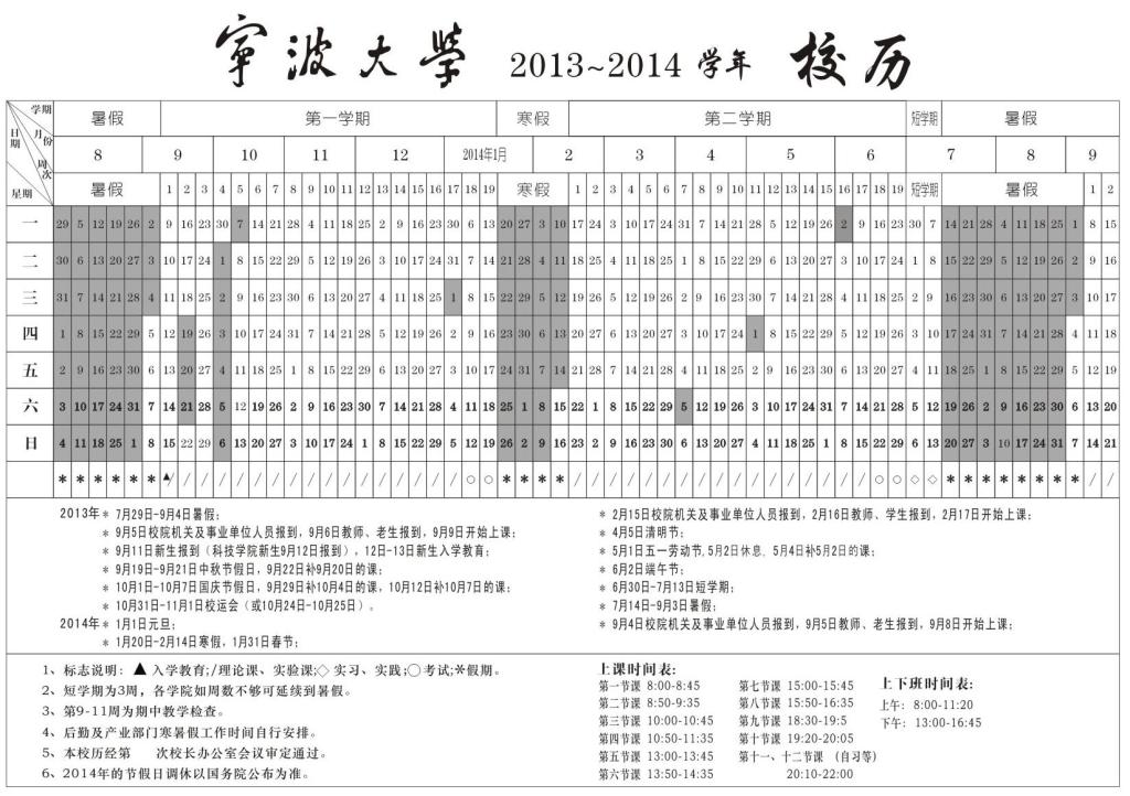现对原2013-2014学年校历作相应调整及说明如下: