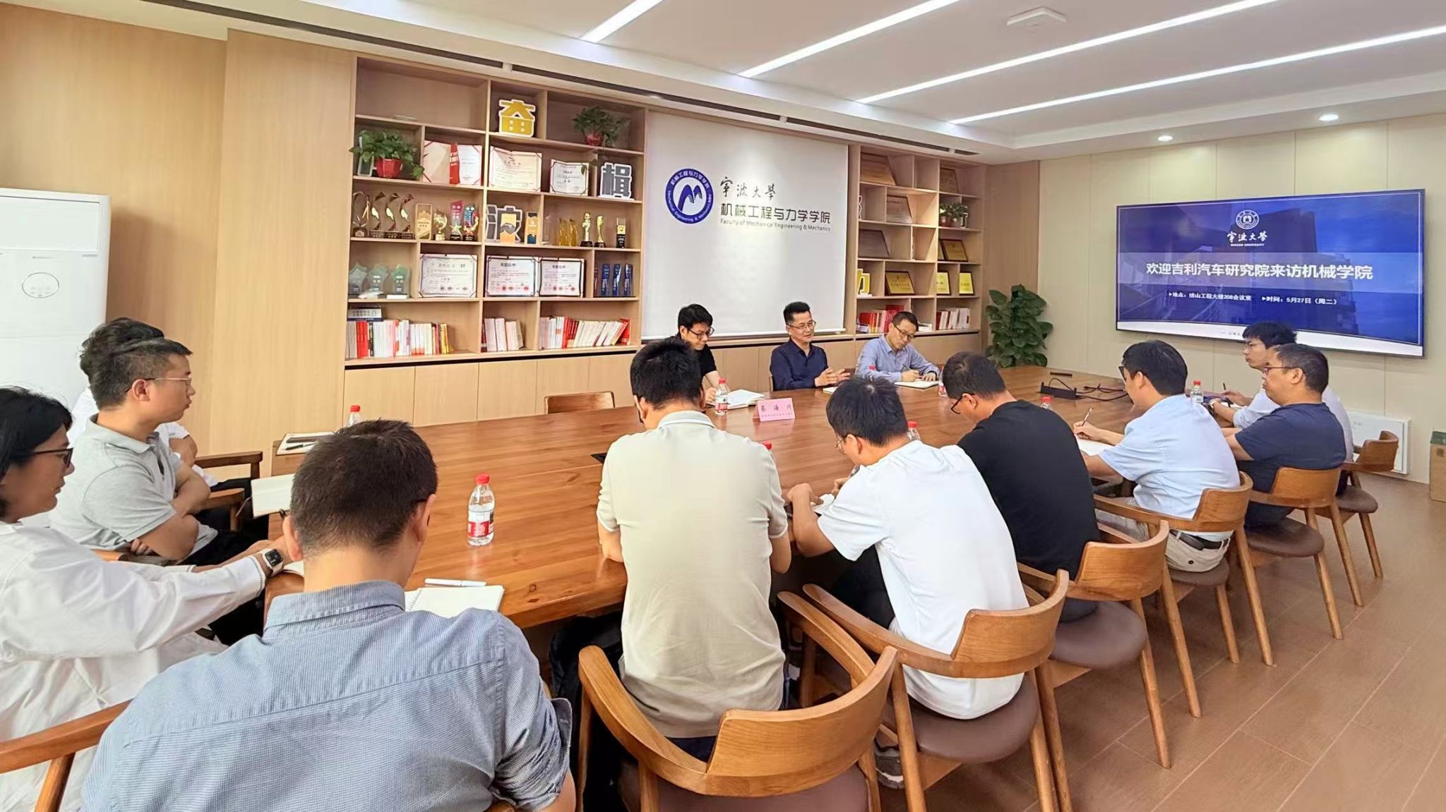 的教师们结合自身研究领域,围绕智能传感、智能运维、机器人、检测控制等方向,与吉利研究院团队展开了深入讨论。双方就如何将高校的科研成果转化为企业的生产力,以及如何通过联合研究推动智能制造技术的突破与应用,进行了热烈的探讨。