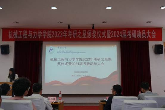 张明华副院长首先介绍了学院2023年考研情况。今年学院考研升学人数、升学率再创新高,共有73人成功考取国内外研究生,其中63人考入“双一流”高校或2023年QS排名前100高校,同时产生了两个全员升学的“金牌寝室”;沈妍伶副书记结合学院近五年考研相关数据,分析了学院各本科专业的考研去向以及学院硕士点的报考情况。随后,力学硕士学位点负责人董新龙教授、机械学科教师李子轩副教授分别宣讲,就学科特色和优势、师资力量和实验条件、科研和人才培养取得的成果介绍学院两大学科,鼓励2020级同学报考老王论坛