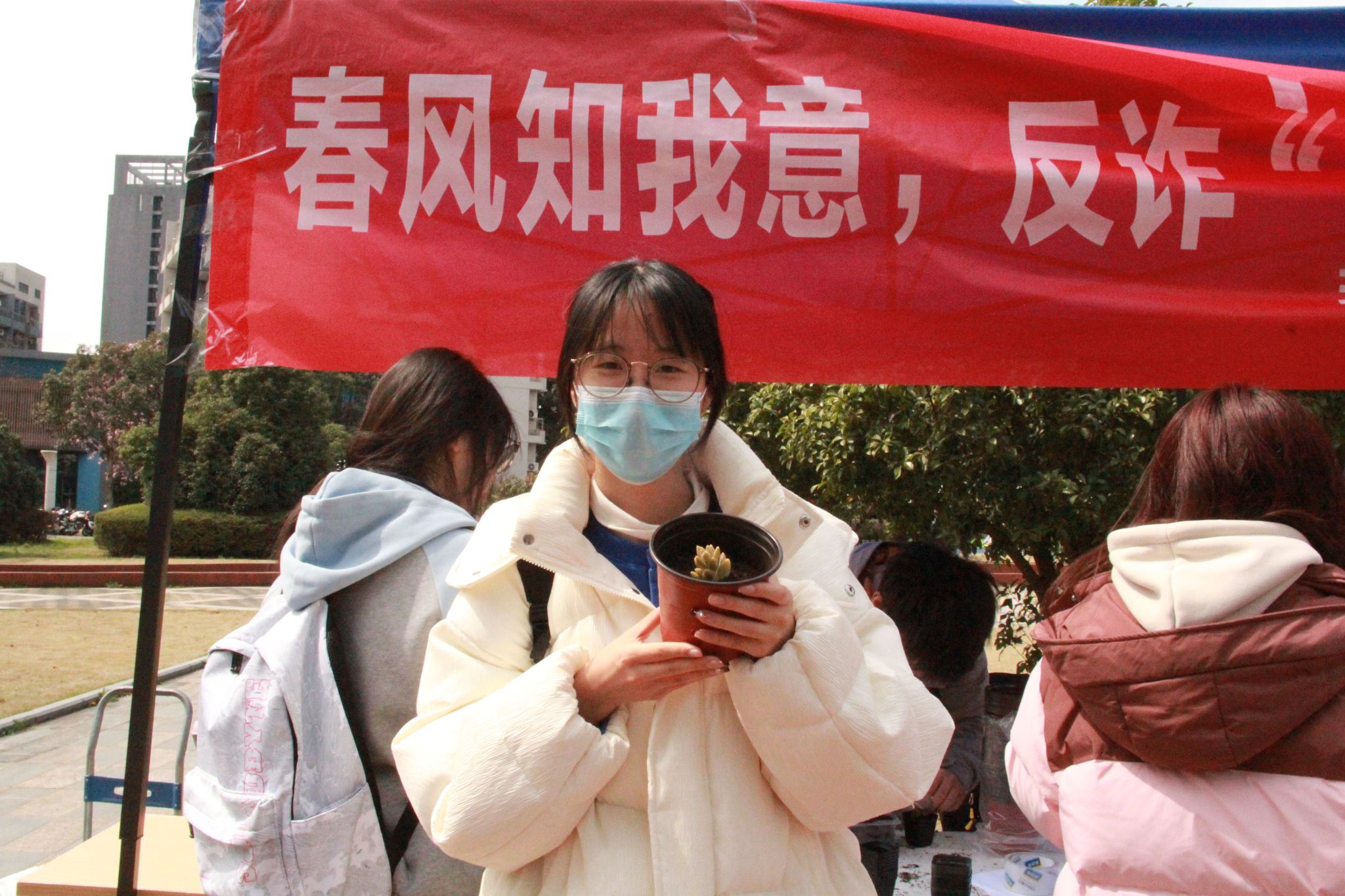 我们可以看到同学们热情洋溢,积极参与反诈答题,切实营造了浓厚反诈氛围。在这个过程中,他们不仅收获了精心挑选的鲜花种子和多肉植物,同时也将反诈知识牢记在心。