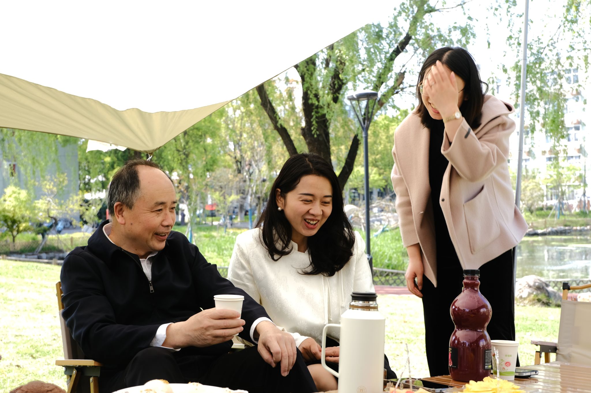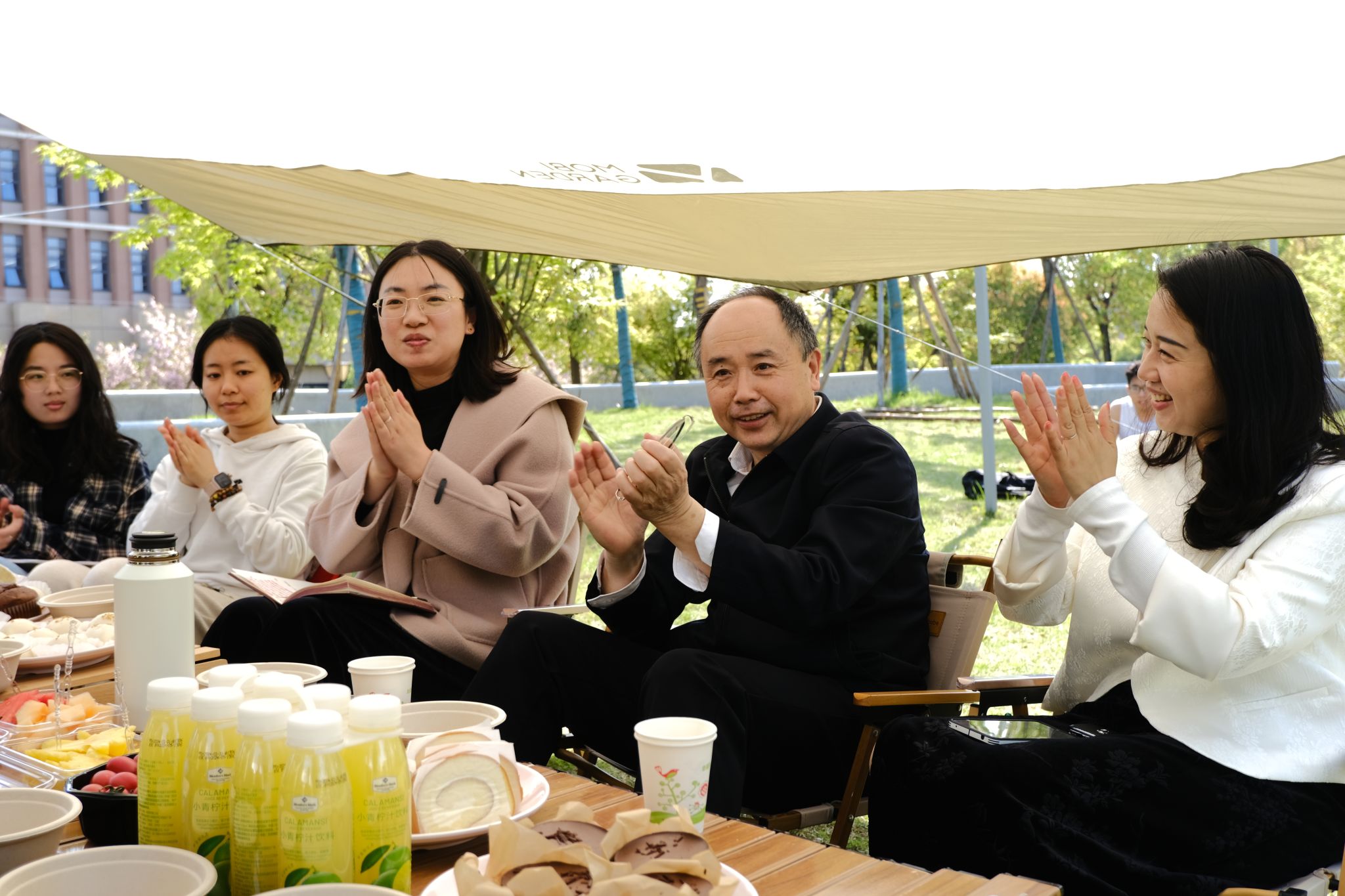 下午茶营造了轻松自在的氛围,减少了几分课堂上严肃,增添了几分春日的活力,师生围坐在天幕之下,借着万物皆喜的春色,品尝美味的茶点,畅谈知识的高塔。在天清湖静的阳明湖畔,不断泛起涟漪的思想光芒和波光粼粼的天青色湖面交相迎合,构建出独树一帜的人间四月。本次活动不仅激发了学生对于专业知识的兴趣,同时借着师生齐聚的机会共享春日风光,更为学院学风建设上起到了极大的促进作用。