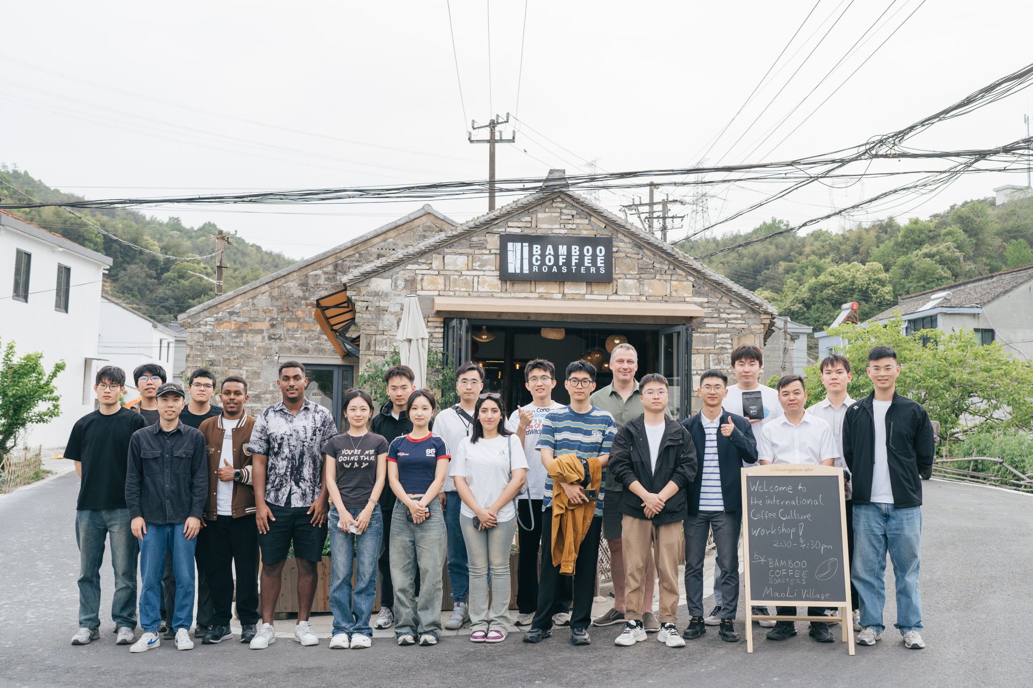 午后,支部师生走进毛岙村的BAMBOO COFFEE咖啡店,感受中外文化交融下的乡村振兴实践。德国友人Frank创立的BAMBOO咖啡店,以竹文化为纽带,将西方咖啡艺术与本土生态资源结合,成为村庄发展的“活力引擎”。党员们了解手冲咖啡制作过程,聆听Frank扎根中国乡村的故事。在交流中了解到,毛岙村通过引入文旅产业、发展生态农业,实现了从“空心村”到“网红打卡地”的蝶变。