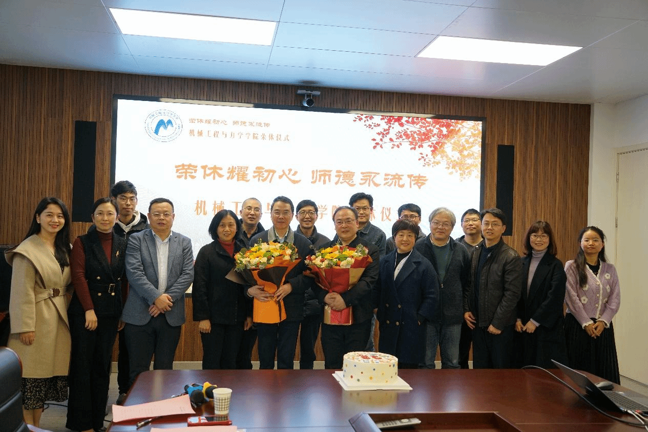 最后,学院领导、分工会领导分别向两位教师赠送了鲜花和慰问品,在场师生合影留念。