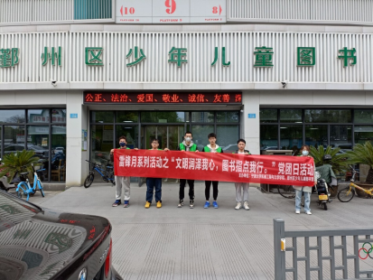 联合鄞州区少年儿童图书馆开展了雷锋月系列活动之“文明润泽我心,图书指点我行”主题党团日活动。院团委学生会,217机械国贸团支部,共6名志愿者参加活动。