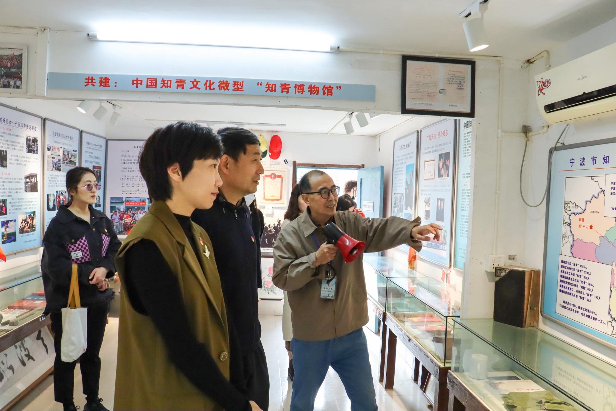 离开陈列馆,一行人来到了九龙湖知青博物馆。九龙湖知青馆是镇海区第一个知青博物馆和村民自住房改造的乡村博物馆,内设知青文化展厅、知青旧居、知青工作室等,有红色展品百余件。老知青王元标馆长向我们介绍一件件珍贵展品,讲述知青们克服各种困难,扎根农村,用满腔热血和青春年华,帮助和服务广大农民的事迹,同时展示了偏远农村发生的翻天覆地之变化。座谈会上,双方也就后续基地共建进行了探讨。活动结束之际,王元标馆长向师生党员代表赠送了《宁波九龙湖知青博物馆》杂志首刊。
