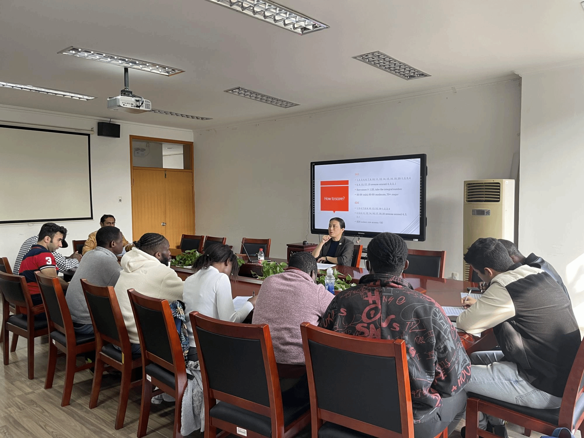 心理健康指导中心——舒心坊的地址及预约方式,鼓励留学生在需要时走进舒心坊,及时排解不良情绪,缓解各类压力。现场气氛活跃,留学生们纷纷表示受益良多。