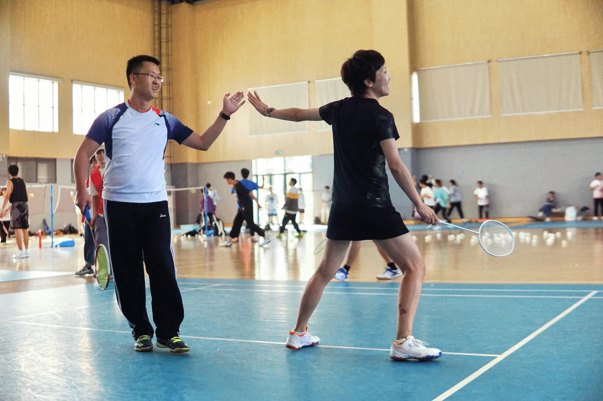 和商学院两个分工会的认真组织下,创新了友谊赛的赛制,受到了两院教职工羽毛球爱好者的广泛好评。