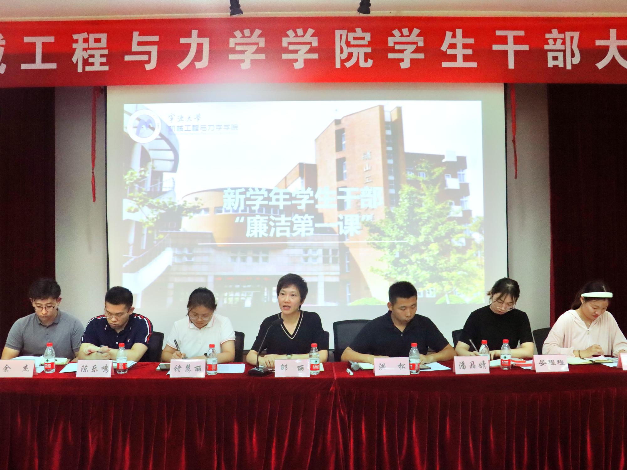 在绣山工程楼三楼报告厅开展新学年学生干部“廉洁第一课”。学院党委副书记、纪委书记邵丽主讲,学院各大学生组织负责人、党支部书记、团支部书记、班长等120余名学生干部聆听了这堂专题思政课。