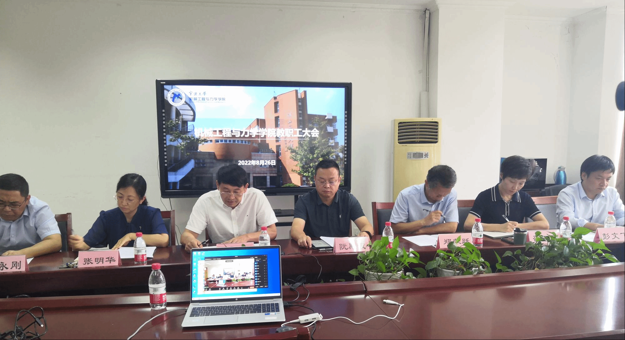 在绣山工程楼208会议室召开全院教职工大会。学院党政领导班子和各系/中心主任、副主任,各办主任出席了现场会议,其他教职工参加了钉钉视频会议。会议由党委书记胡泓主持。