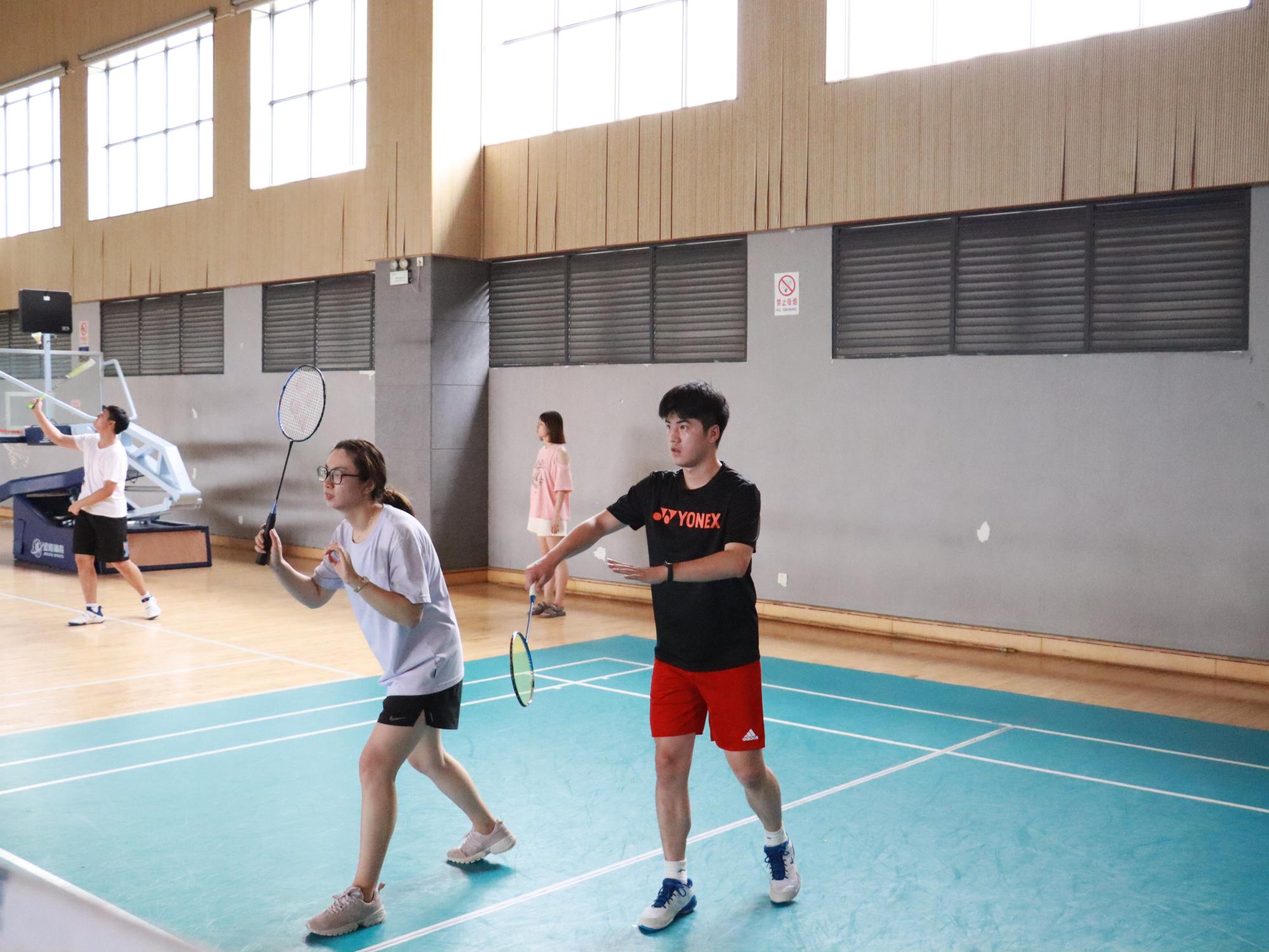 研会和学生会负责的“我与导师面对面”暨第十三届健康节之师生羽毛球赛在北区忻元甫球馆举行,本次比赛共16支师生队伍参赛。
