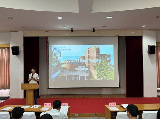 学工办招生宣传工作辅导员陈乐鸣通报了线下目标高中宣讲工作准备情况。目前学院所负责桐庐、富阳、淳安、建德等四个片区均已确定线下宣讲时间与具体地点,每个片区有两名教师宣传联络员与至少两名学生志愿者。目前各片区已配齐力量、备齐物资,于本周末集中开赴目标高中宣讲。