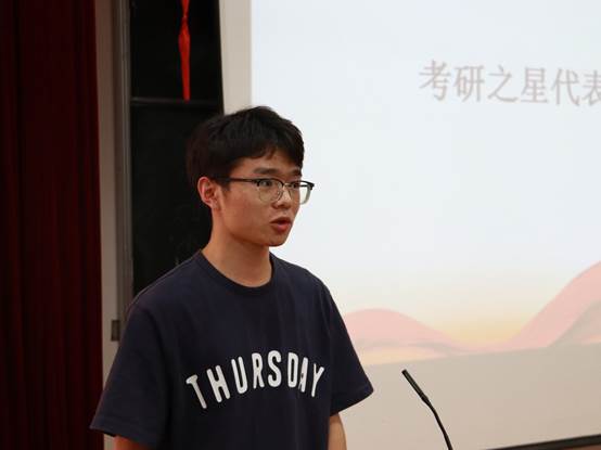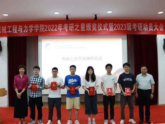 为肯定考研学子的辛勤付出和取得的优异成绩,院领导分别为2022届考研优秀班级和“考研之星”代表颁奖。181机械1班和183工程力学(拔尖人才创新班)分别以48.72%和56.25%的升学率获得2022届考研优秀班级,62名取国内双一流或境外QS排名200以内院校的同学被授予“考研之星”称号。随后“考研之星”代表吴兆波发表了获奖感言。