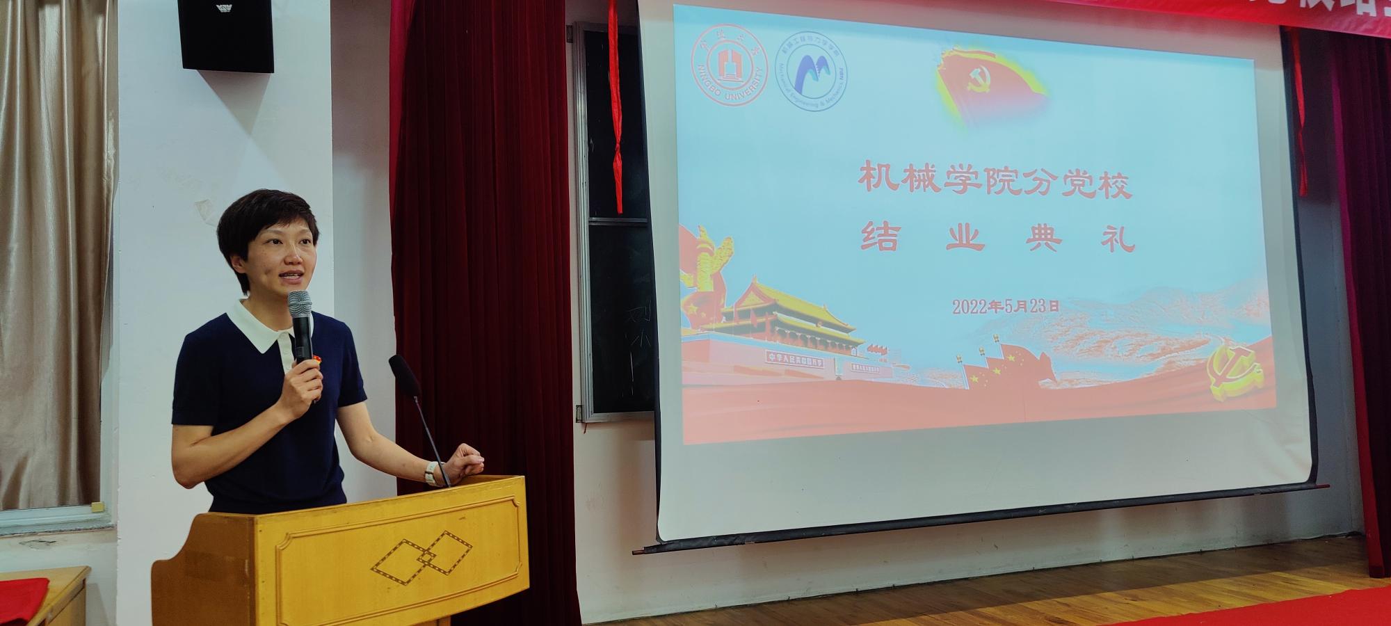 2022年上半年分党校结业典礼在绣山工程楼三楼报告厅顺利举行。学院党委副书记、纪委书记、分党校副校长邵丽,全体学工办辅导员和近200名党校培训学员共同参加典礼活动。