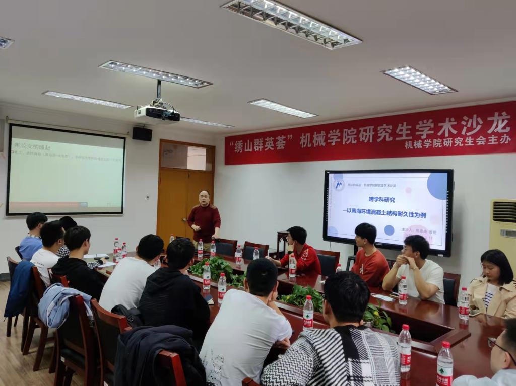 陈建康教授作为主讲嘉宾,本次分享主题是《跨学科研究—以南海混凝土结构耐久性为例》。现场共有50余名研究生参加,氛围轻松,互动热烈。