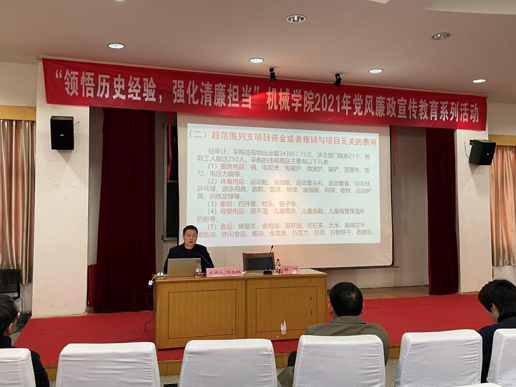 召开科研经费违规风险防范专题学习会,校纪委委员、审计处处长翁光聪受邀作专题讲座。学院党委副书记、纪委书记邵丽主持学习会,学院党政领导、纪委委员、党员教师、研究生党支部学生代表参加了学习会。