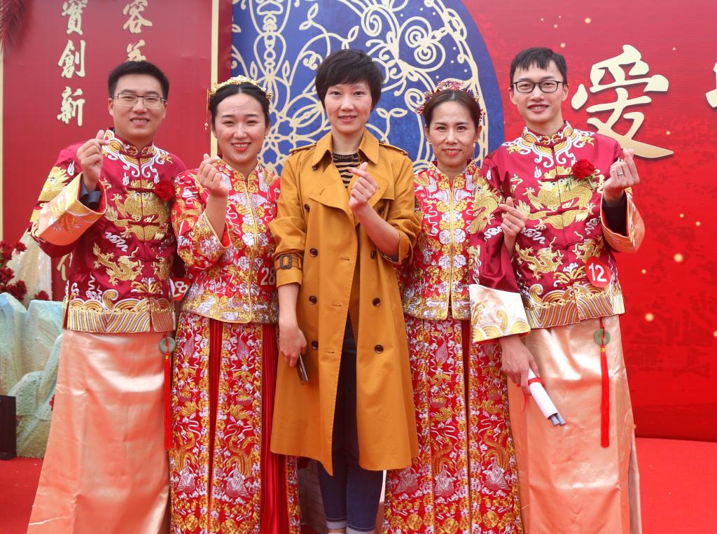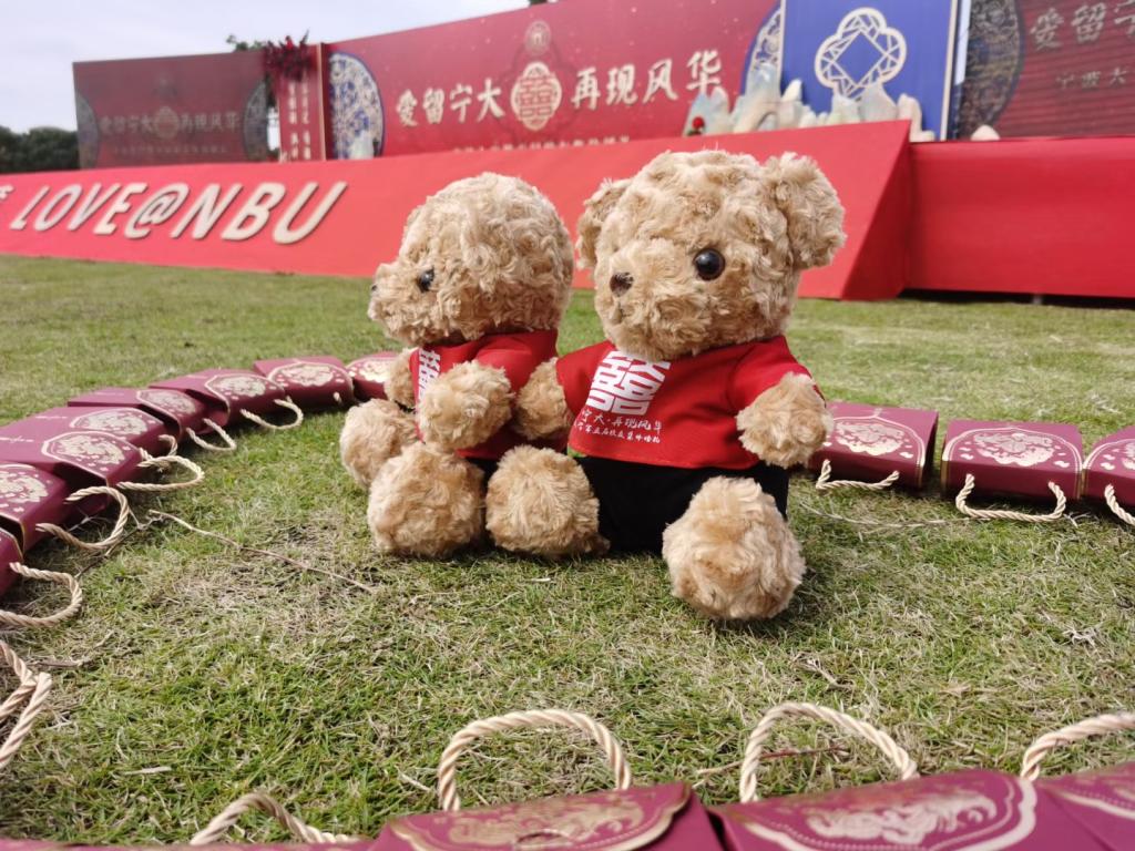 13级校友屈云陵和12级校友林尉;15级校友吴斌和15级校友黄珊静(人文学院)在祝福声中互赠信物。他们最想见的老师们也现身婚礼现场,老师们把精心定制的婚书和吉祥物“喜熊”送到新郎新娘手上。之后,新人们抛出手中的婚礼吉祥物,将现场气氛推到了高潮。仪式结束,两对新人与机械师生热情交谈、合影留念。