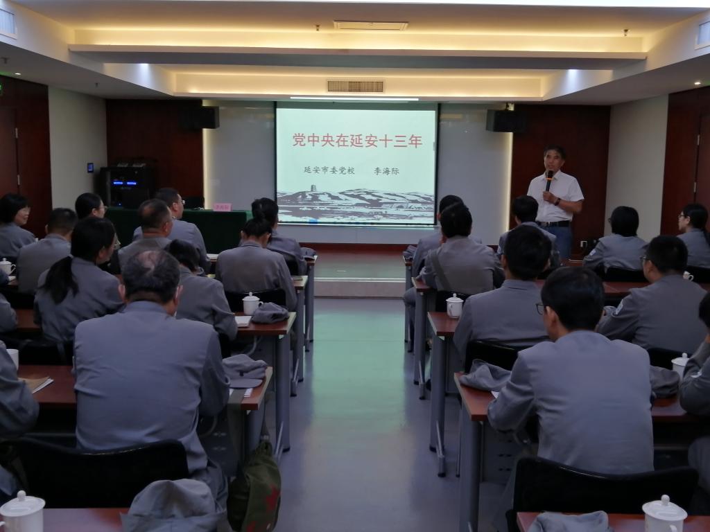 开班仪式结束后,延安市委党校、延安干部培训学院李海际教授为全体党员上了“党中央在延安十三年”专题党课。李海际从“落脚陕北、促成统战”“延安岁月、光耀千秋”“转战陕北、决胜千里”等三个阶段,系统讲述了党中央在延安十三年的奋斗历程和伟大成就,详细讲述了党中央领导人民群众在抗日战争和解放战争期间艰苦卓绝的斗争和大生产运动发展的历史;阐述了“自力更生、艰苦奋斗”、“全心全意为人民服务”、“实事求是”的延安精神;总结了延安时期的历史贡献和基本经验,指出牢记党的宗旨,坚持独立自主和实事求是,始终相信和依靠人民群众,建立最广泛的爱国统一战线,坚持人才战略,把党建设好、始终维护党的团结和统一,是革命取得胜利的法宝。