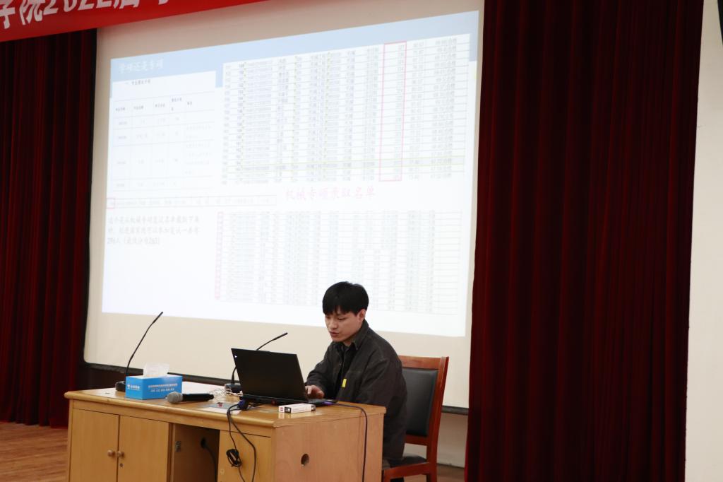 专硕淘汰率高,学硕上线难度大,但只要上线录取概率很高。同时他强调同学们对自己要有合理的定位,既不要好高骛远,也不能妄自菲薄,要慎重选择院校和专业,积极把握调剂机会,最后他也预祝2022届毕业生能够再创佳绩,为个人争荣誉,为学院添光彩。