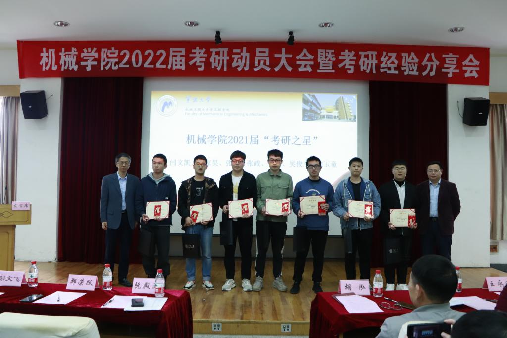 2022届学生考研积极性,帮助他们规划备考方案,增强考研信心,提升考研竞争力。4月14日下午1点,2022届考研动员大会暨经验分享会在绣山工程楼三楼报告厅顺利召开,全体大三和荣获2021届“考研之星”的优秀学子近180余名同学参加了本次活动,学院特聘院长阮殿波、党委书记胡泓、院长郑荣跃、副院长张明华和彭文飞等学院领导出席,学位点负责人、各系主任、2017级、2018级班主任代表也都悉数到场,大会由学院就业指导中心主任张万兵主持,