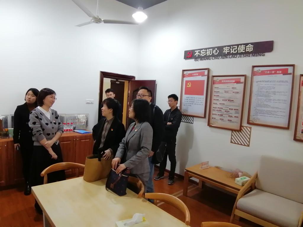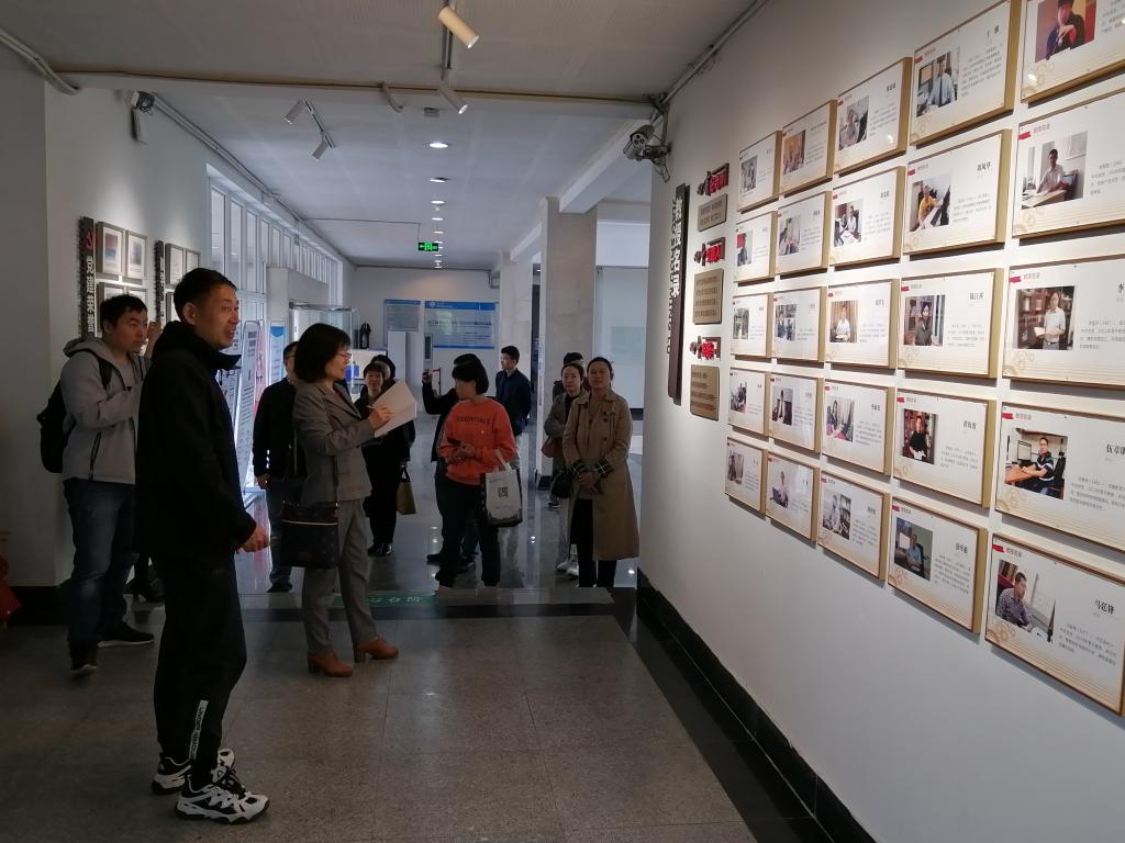 支部书记张明华带领孙雪波一行从绣山工程大楼一楼大厅看起,沿着楼梯逐层
