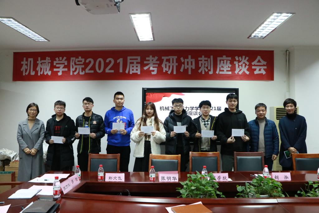 2021届考研冲刺座谈会在绣山工程楼208会议室顺利举办。本次活动旨在为本院考研学子在寒冷的冬日里送上考研冲刺温暖礼包、听取考研同学珍贵建议、预祝考研同学成功上岸。本次考研座谈会得到了学院领导、老师的大力支持,学院党委书记胡泓、院长郑荣跃、党委副书记邵丽、副院长张明华、彭文飞悉数出席,参加座谈会的还有学院各系主任、学工办辅导员和30余位考研学生代表。会议由学院就业指导中心主任张万兵主持。