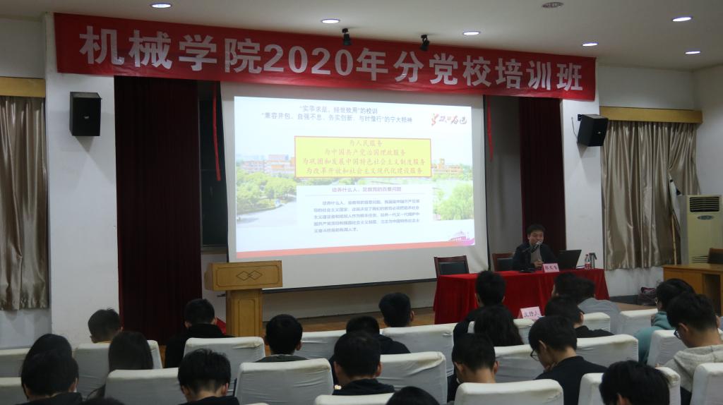 分党校举行党章学习主题教育讲座。院党委委员,副院长彭文飞,以“不忘初心,不负韶华,学习《党章》,争做新时代合格党员”为主题,为全体分党校培训班学员带了一趟内容丰富的党章学习思政课程。