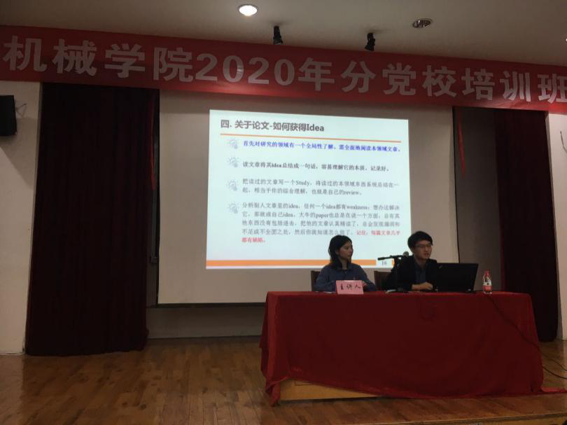 在绣山工程楼三楼报告厅举行2020年国家奖学金获得者经验分享会。分党校培训班的三个班全体学员现场聆听了身边同学的优秀事迹,感受榜样的力量。
