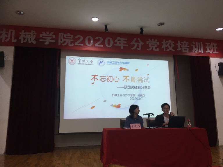本次国奖获得者分享会,由张松、吴烨卿、吴俊杰等5名本硕博同学共同组成。其中,4名同学已经是一名光荣的共产党员,1名同学为即将加入党组织的发展对象。他们围绕课题研究、专利申请、学科竞赛、创新创业和学生工作等内容进行了较为全面细致地介绍,向与会同学提出了“板凳甘坐十年冷”的精气神,注重团队协作,练就强大的抗打击能力和注重劳逸结合等多条有益建议。