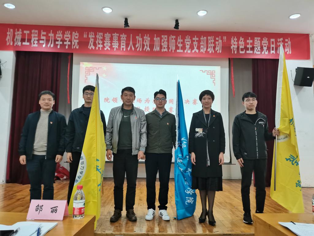 在绣山工程楼三楼报告厅举行“发挥赛事育人功效,加强师生党支部联动”特色主题党日活动。学院党政领导和百余名师生党员共同参与。