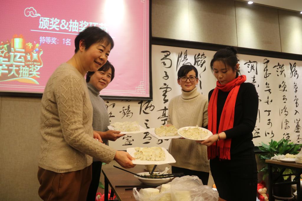 创建人之一,86岁的王礼立老教授上台抽取了幸运员工,并送上了亲笔签名的著作,全体教职员工备受感动和鼓舞。为了活跃现场气氛,期间,还穿插了猜灯谜、“你划我猜”黄金100秒、包饺子比赛等游戏环节,老师们踊跃参与,欢声笑语不断、氛围热烈融洽。