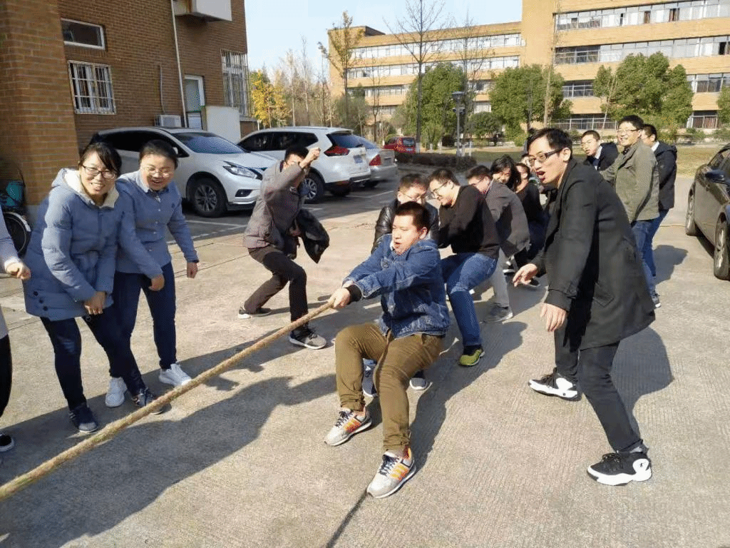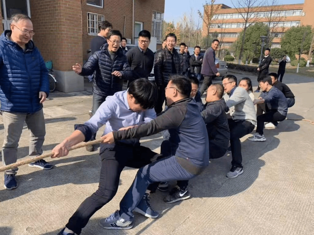 “迎新年”教职工拔河比赛。本次拔河比赛以基层组织为单位,每单位最多可派两支队伍参加比赛,抽签分组后采取“小组赛—淘汰赛—决赛”的比赛形式。