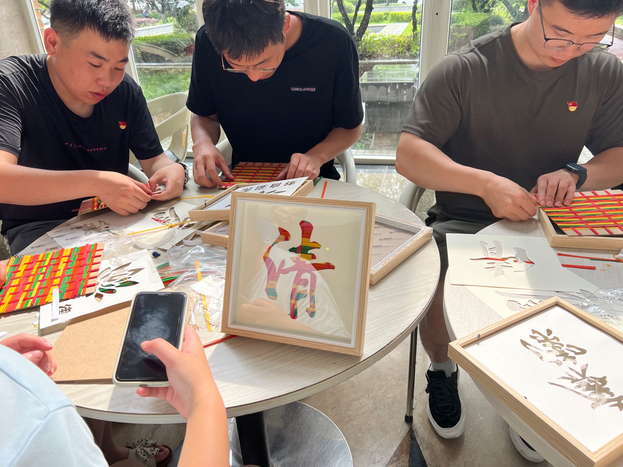 随后,支部成员一起制作非遗竹编画,一挑一压,一幅幅精美的竹编画制作完成,小小的竹编中蕴含着中华民族劳动人民辛苦劳作的结晶。竹子作为正直谦虚、坚韧不拔、无私奉献的精神代表,每一名共产党员都应该学习“千磨万击还坚劲,任尔东西南北风。”的品质,坚定信念,保持正直的政治本色。