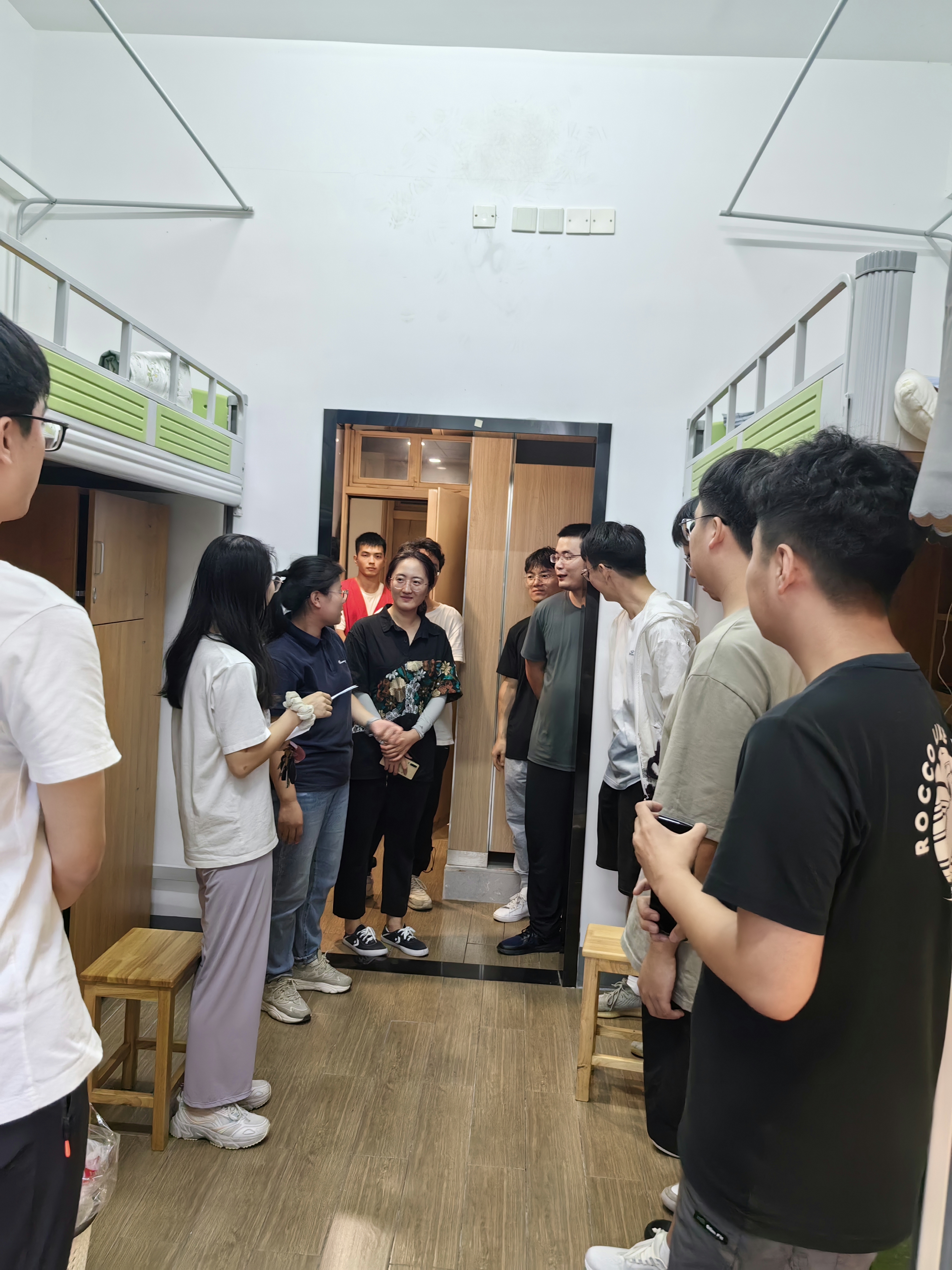 为更好地了解23级新生的报到进度和集体生活情况,9月13日上午,学院党委书记王智腾、特聘院长阮殿波、党委副书记沈妍伶以及研究生辅导员、学院学生组织代表走访了硕博研究生新生寝室。