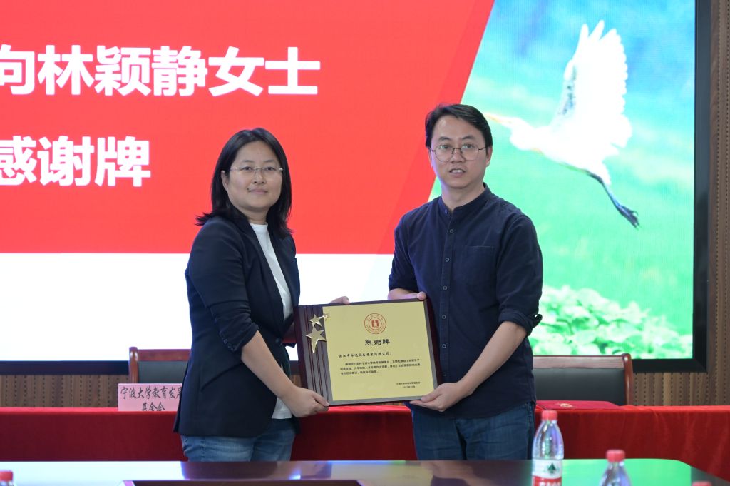 校友会副会长兼秘书长/校教育发展基金会副理事长兼秘书长/校友办主任胡宝华向林颖静女士赠送捐赠证书,并表示学校的发展离不开社会各界的大力支持。希望校企双方能够密切保持联系,充分利用双方的资源平台,在社会服务、产教融合等多领域开展深度合作,相互支持。希望受资助的同学加倍珍惜学习机会,自信自强,以实际行动回馈爱心企业、校友、师长对我们的关爱与帮助。