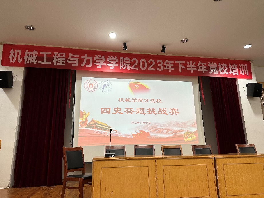 为进一步提升全体党校学员历史素养,坚定历史自信,增强历史主动,担当历史使命,11月6日,“学习总书记考察浙江重要讲话精神,争做新时代青年”专题实践活动之四史知识答题挑战赛在绣山楼三楼报告厅举行,分党校各学习小组代表参加比赛,现场百余名党校学员观看竞赛。