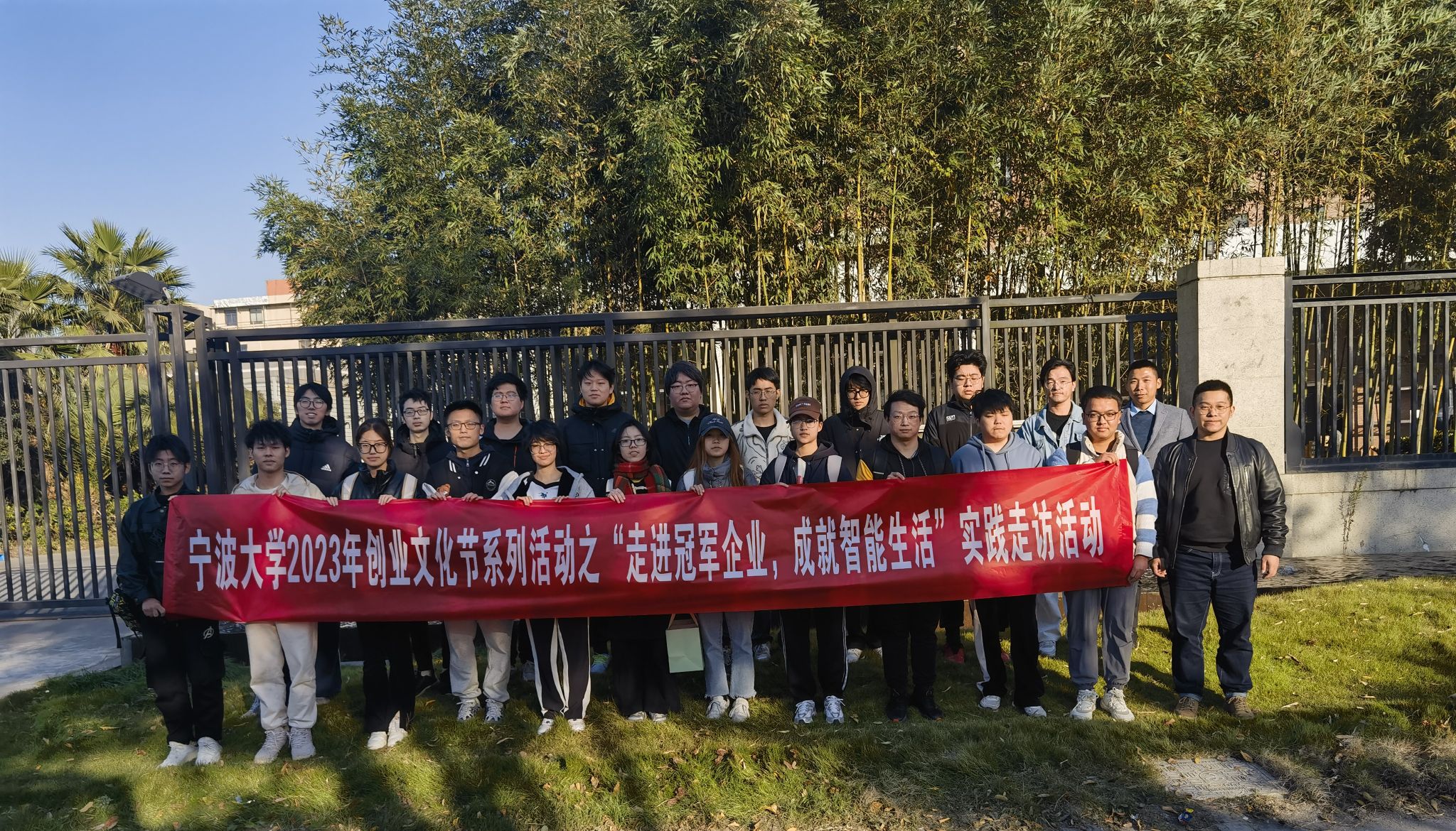 师生一行20余人乘车前往宁波杜亚机电技术有限公司(以下简称“杜亚机电”)进行参访交流。
