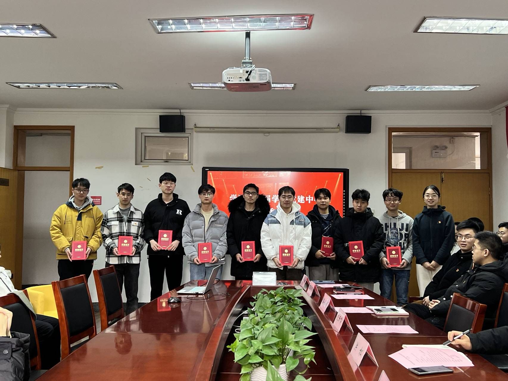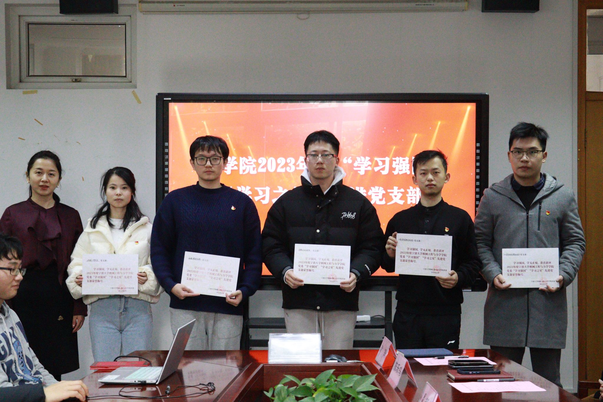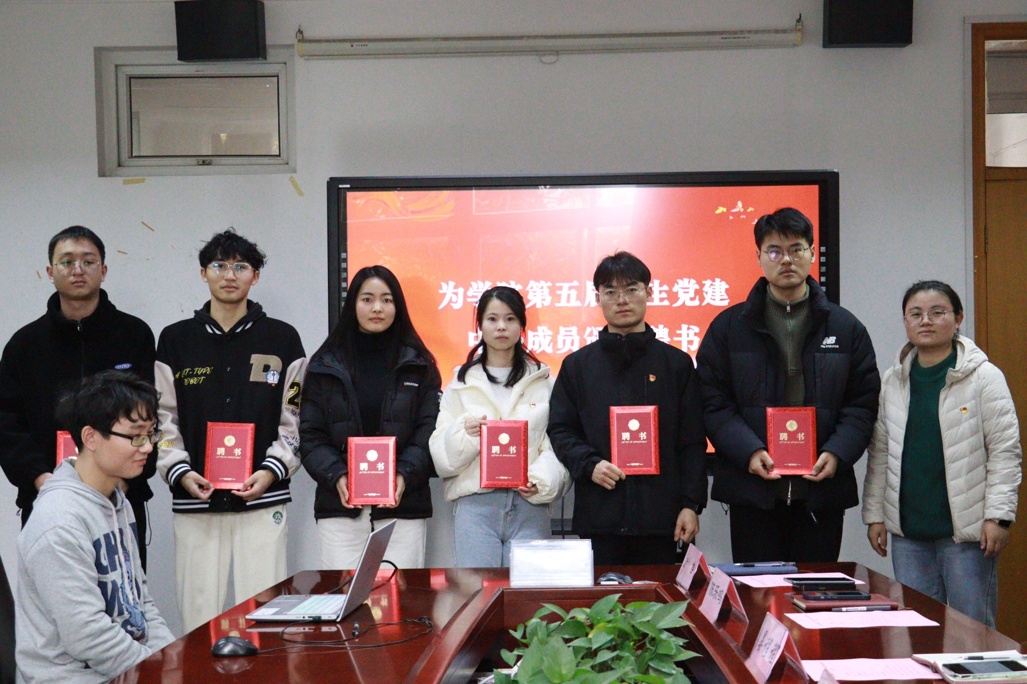 随后,学生党建中心指导老师褚慧丽为第五届学生党建中心成员颁发聘书,学院团委书记晏程程为第五届学生党建中心优秀干事颁发荣誉证书,感谢他们为学院党建工作的付出。
