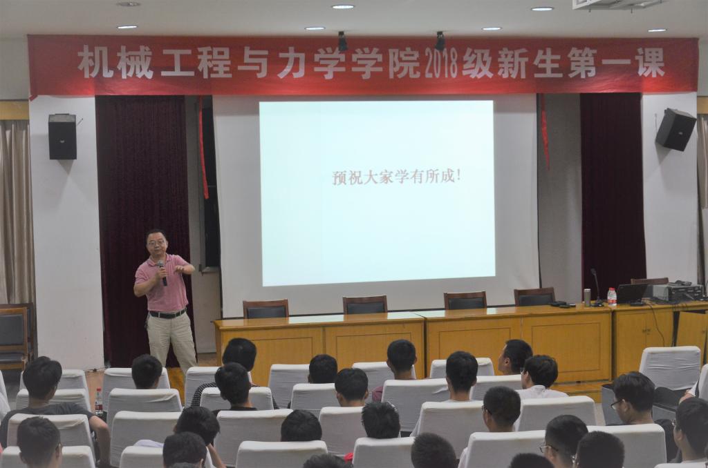 执行院长杜建科教授在绣山工程大楼三楼报告厅主讲题为“动力不已乐其间”的新生第一课。2018级博士、硕士研究生以及工程力学拔尖人才创新班本科生共计170余人参加。