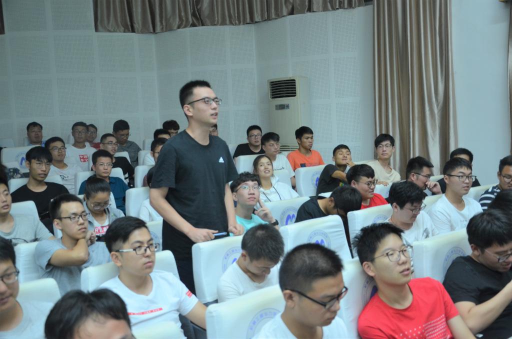 杜院长用自己创作的八句诗引出八个方面的内容:目标态度、相处导师、管控时间、研究方法、组会报告、选题综述、发表成果、做人做事等。他结合自身丰富的人生经历,与同学们进行了推心置腹的交流。他勉励新生们要谨记“诚信、严谨、创新、服务”的院训,志存高远,脚踏实地,树立信心,不畏艰辛,“于无声处攀高峰”。接着,杜院长又与同学们分享了他自己创作的两首诗歌,展望“智勇倚天问鼎元”的美好未来。互动交流环节,新生们踊跃提问:研究生三年如何规划、本科阶段与研究生阶段做研究的区别、面对困难和低谷如何自我激励、怎么做到文理兼顾……杜院长耐心幽默地予以解答,现场掌声阵阵,气氛热烈。