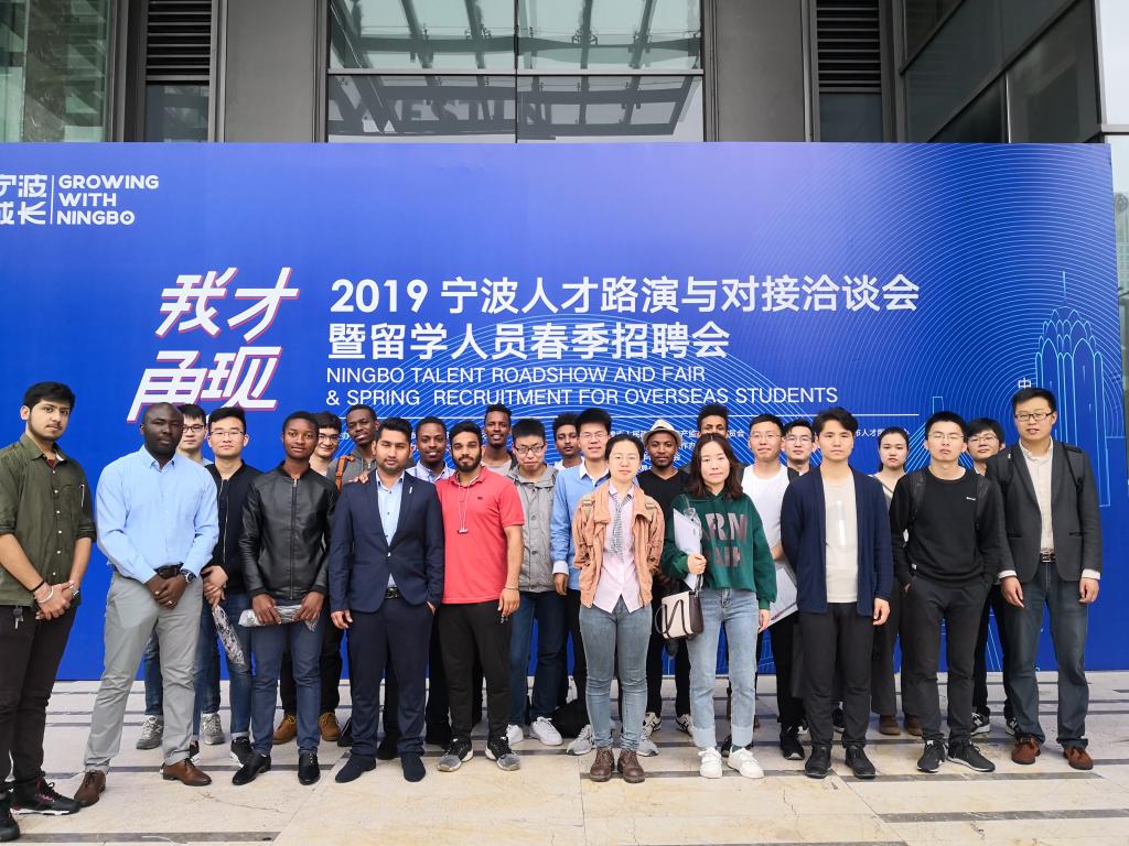 组织近40名中外学生参加在宁波威斯汀酒店举行宁波市“我才甬现”2019人才路演与对接洽谈会暨留学人员春季招聘会。本次招聘会由中共宁波市委组织部(市委人才办)和宁波市人力资源和社会保障局主办。