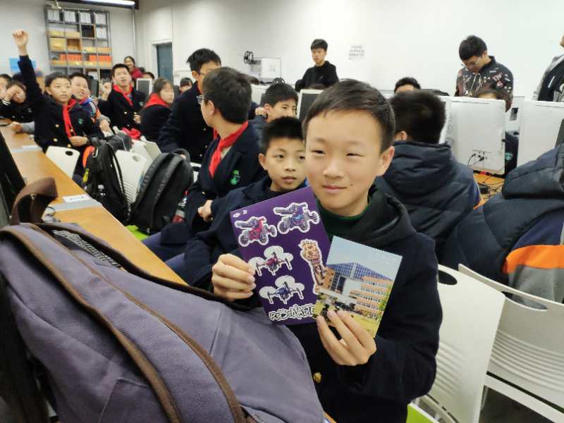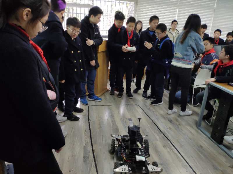 在包玉书三号教学楼111智能车与机器人创新实验室内,社团成员热情接待了82名初一同学及陪同教师们。活动寓教于乐,形式丰富。俱乐部采用视频讲解与提问相结合的方式给同学们介绍了“big dog”、ABB YuMi双臂机器人、波士顿动力机器人、“Atlas”等机器人,在学到机器人种类,功能与原理的同时,积极参与互动的同学们还得到了印有俱乐部战车的明信片与贴纸。小朋友们还依次操作了由实验室“老王论坛