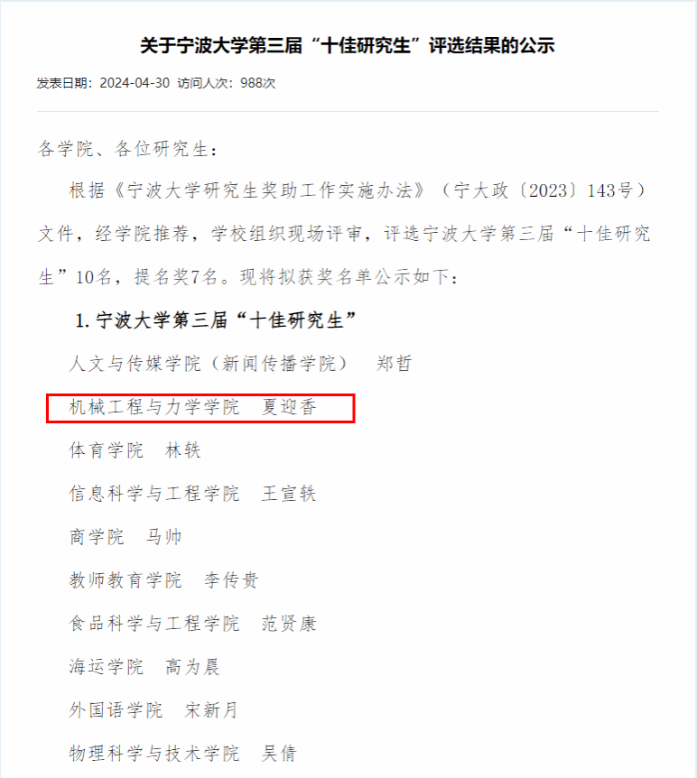 第三届“十佳研究生”10名,提名奖7名,老王论坛