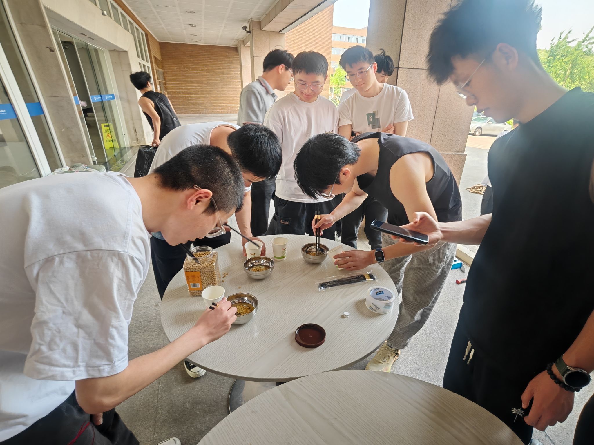 趣味运动会伊始,便迎来了紧张刺激的游戏挑战赛。各小组选手们摩拳擦掌,跃跃欲试。首先是夹黄豆小游戏,选手们用筷子将浸泡在油里的黄豆夹起,40s内夹出20颗才算过关,这不仅是对速度的考验,更是对技巧的锻炼。其次是砸钉子环节,他们聚精会神,力求三锤完成挑战。紧接着是拉轮胎挑战赛,用麻绳绑好40kg轮胎平放在地上,距离20米,20s原地不动拉至身前则挑战成功。最后,团队成员们携手并肩,默契配合,通过“无敌风火轮”游戏锻炼了团队合作意识,增进了成员之间的情感交流。