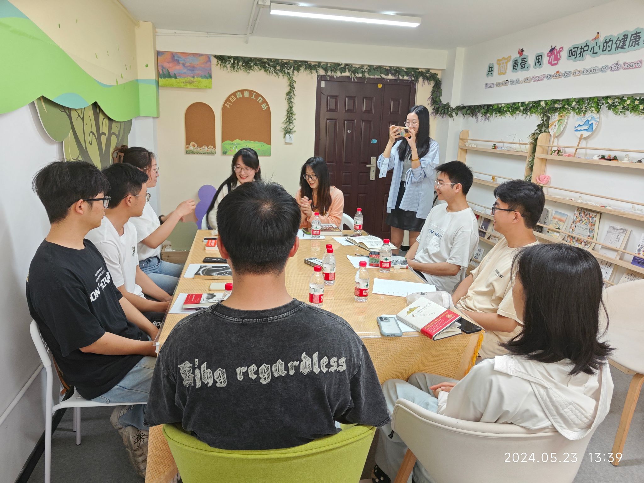 接着,进入了分享读后感环节,每个人分享了自己喜爱的书籍和阅读心得,有《王阳明心学》,《人类简史》,《了不起的盖茨比》等书,涵盖了文学、历史、科技等多个领域,现场氛围和谐热烈,大家有说有笑。主持人给各位分发了笔记本和明信片,让同学们在上面写下自己的“初心寄语”,然后相互交换。活动最后,大家一起在微信上玩起了谁是卧底小游戏,进一步拉近了彼此的距离。