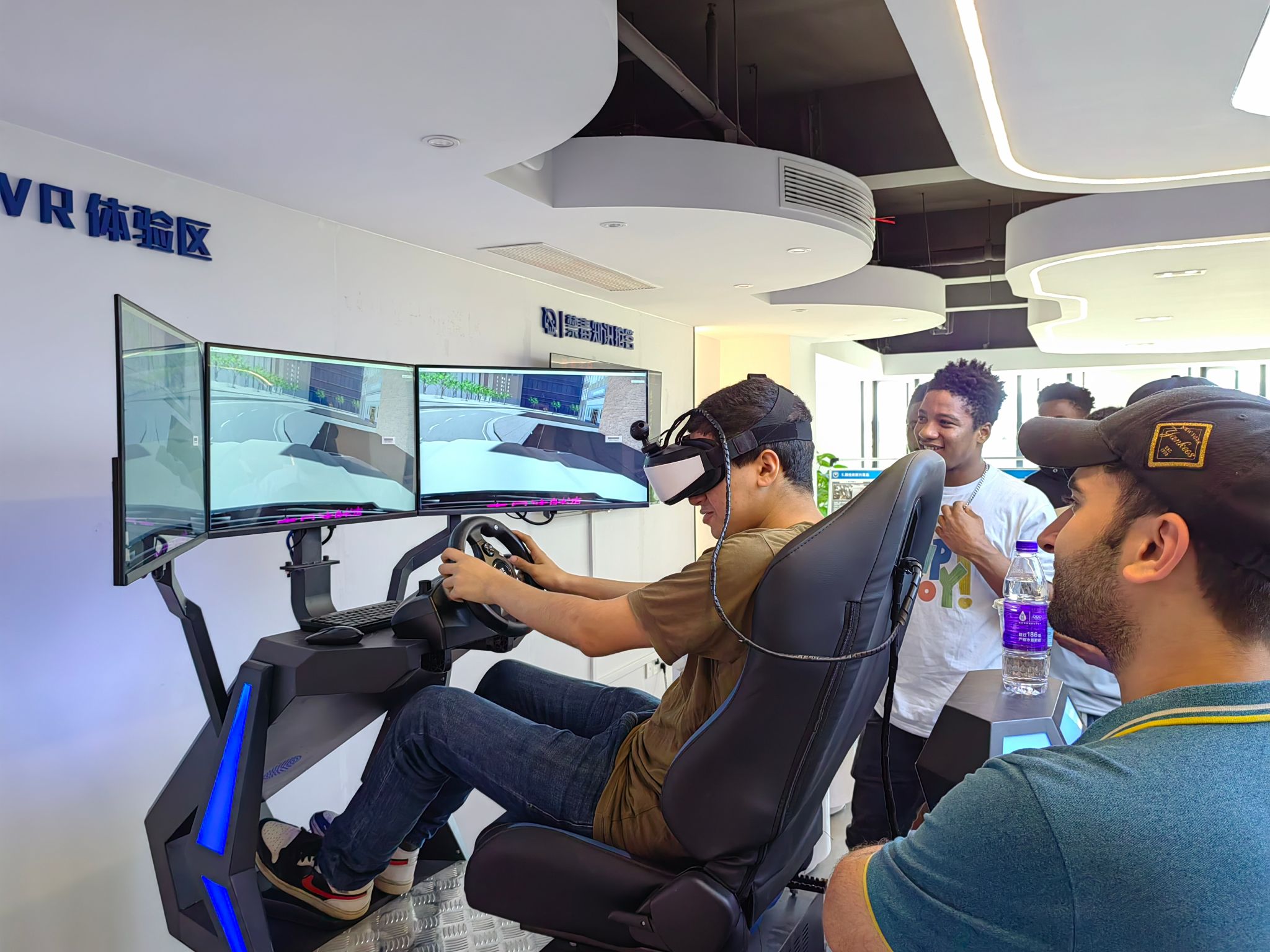 在北仑区禁毒教育地,最先吸引同学们的当属满满一墙的毒品模型,“果冻”“奶茶”“气球”这些生活中最普通不过的东西怎么上了毒品这面墙?通过禁毒宣传员薛舒荣老师的讲解,大家惊呼于这些高超的新型毒品伪装形式,也为爱去酒吧的大家提了个醒。在毒驾VR体验区,学生们争相戴上VR眼镜,“wow, cool, it’s so dangerous!”,所有学生围观在VR体验区,感受数字科技带来的震撼!