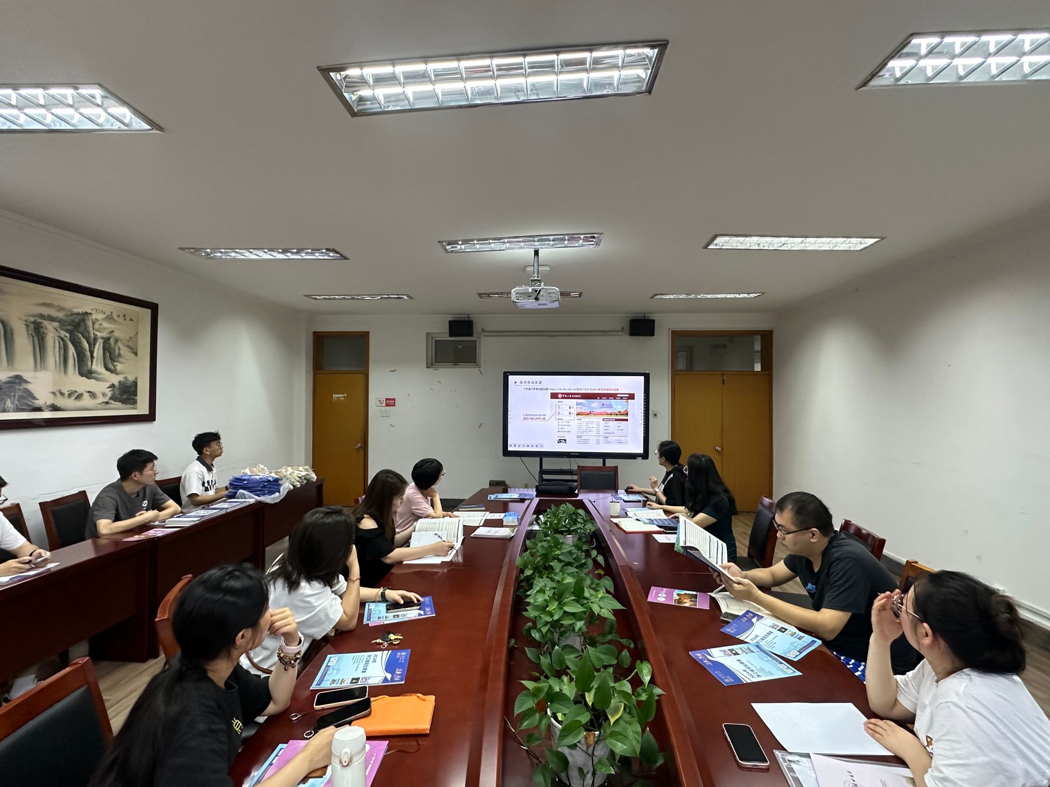 各专业的特色,并进行了补充与答疑。之后,大家领取各点位物资,各位老师与所在片区的学生志愿者进行招生交流与安排部署。